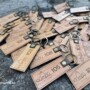 Gantungan kunci kayu premium. Material kayu solid, sintetic leather premium, pin + ring antique gold. Dimensi sekitar 3x8cm. Custom logo bisa dikirim via kawihkinasih(at)gmail(dot)com